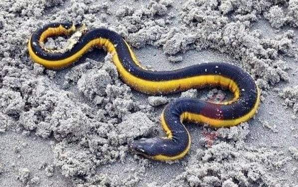 কুয়াকাটা সৈকতে মিললো বিষধর ইয়েলো-বেলাইড সি স্নেক
