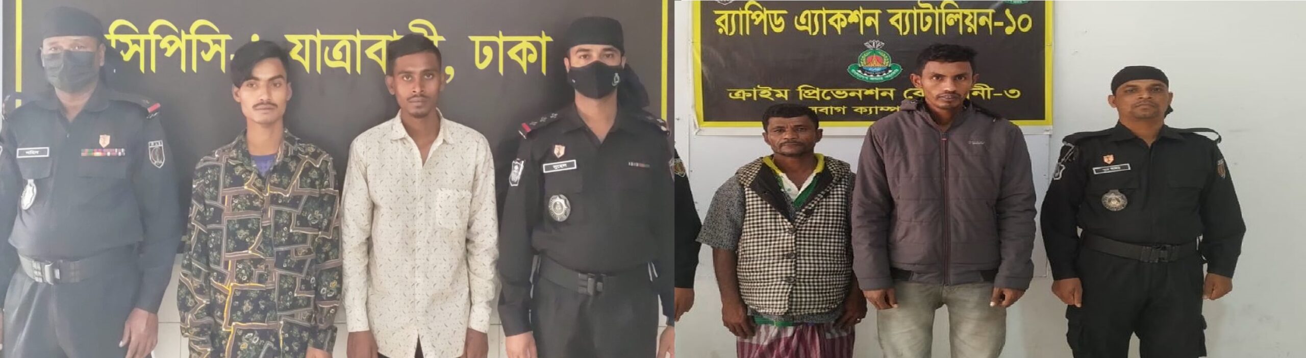 মাদকসহ দুই মাদকব্যবসায়ী ও দুই ছিনতাইকারীকে গ্রেফতার করেছে র্যাব