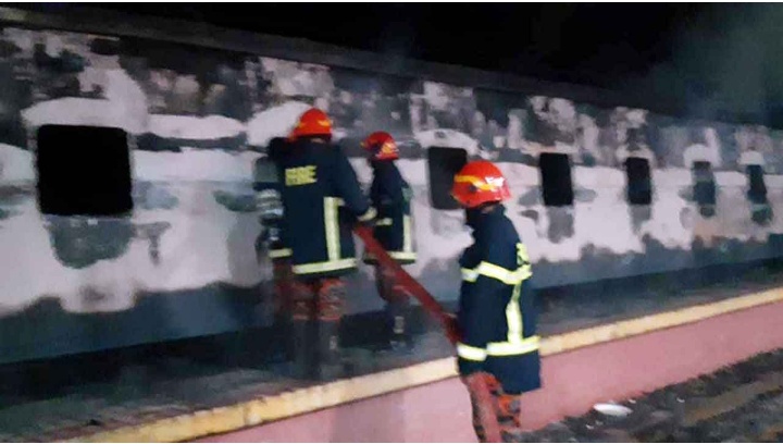টাঙ্গাইলে ট্রেনে আগুন, দুই বগি পুড়ে ছাই