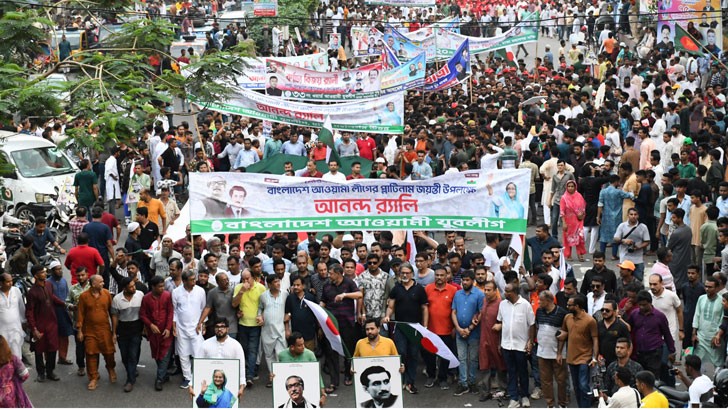 আওয়ামী লীগের ৭৫তম প্রতিষ্ঠাবার্ষিকী উপলক্ষে বর্ণাঢ্য র্যালি