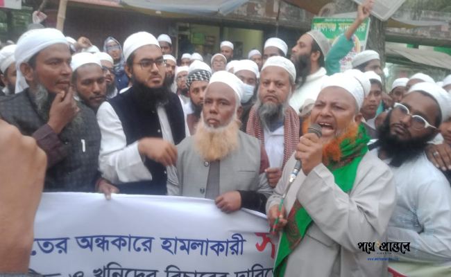 সাদপন্থীদের হামলার প্রতিবাদে সিরাজদিখানে বিক্ষোভ মিছিল