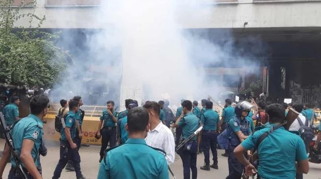 প্রেস ক্লাব এলাকায় উত্তেজনা, পুলিশের সাউন্ড গ্রেনেড নিক্ষেপ