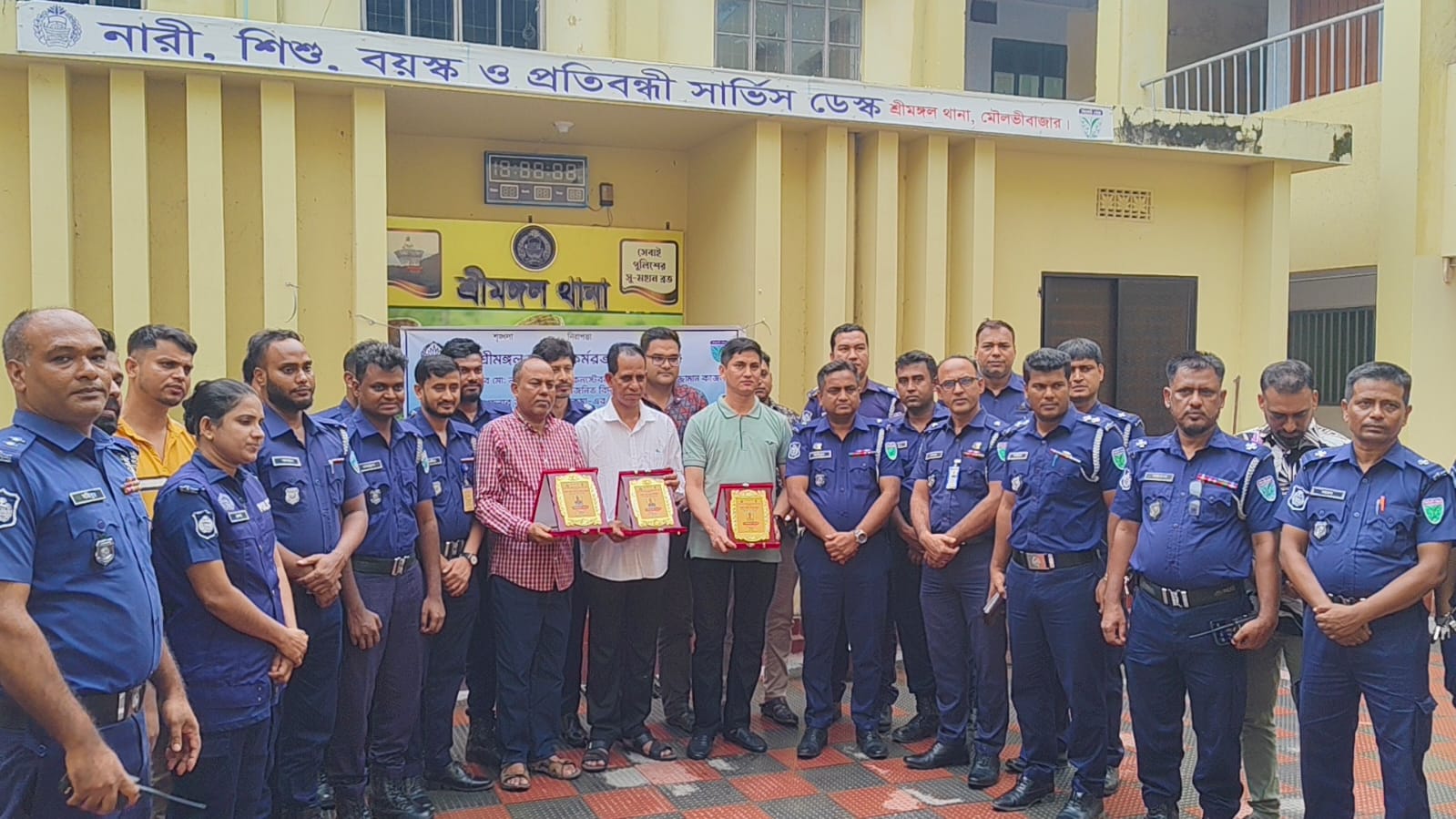 শ্রীমঙ্গল থানার দুই পুলিশ সদস্যকে রাজকীয় বিদায় সংবর্ধনা