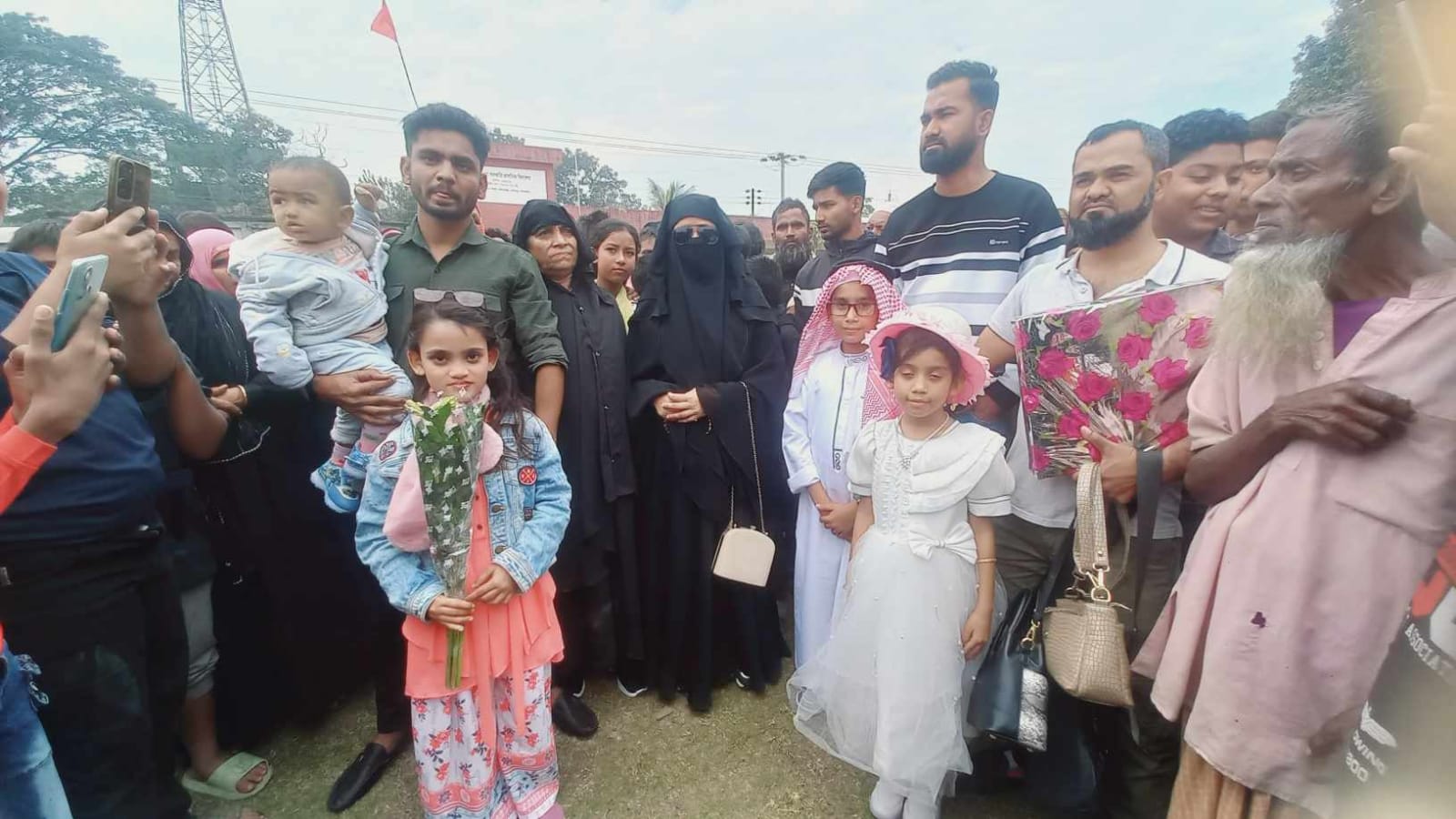শনিবার (২১ ডিসেম্বর) বেলা সাড়ে ১১ টার দিকে টাঙ্গাইলের সখীপুর উপজেলার বড়চওনা উচ্চ বিদ্যালয় মাঠে বৃদ্ধ মাকে নিয়ে হেলিকপ্টারটি অবতরণ করে। এসময় হেলিকপ্টার দেখতে এলাকার কয়েকশো উৎসুক জনতার ভিড় জমে স্কুল মাঠে।