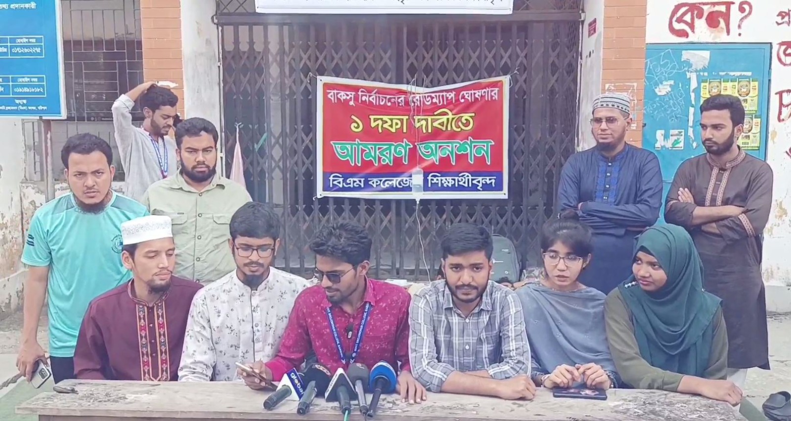 বিএম কলেজের প্রশাসনিক ভবনের সামনে গত ২৬ অক্টোবর প্রথমে এক শিক্ষার্থী অনশন শুরু করেন। পরবর্তীতে তার সঙ্গে আরও দুই শিক্ষার্থী অনশন শুরু করেন।