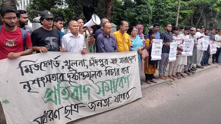 সারাদেশে নৃশংসতার প্রতিবাদে যশোরে মানববন্ধন ও বিক্ষোভ