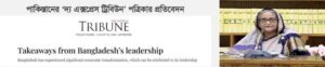 মিথুন আশরাফ : বাংলাদেশের অর্থনৈতিক উন্নয়নের জন্য প্রধানমন্ত্রী শেখ হাসিনার নেতৃত্বের ভূয়সী প্রশংসা করে নিবন্ধ প্রকাশ করেছে পাকিস্তানের পত্রিকা ‘দ্য এক্সপ্রেস ট্রিবিউন’। ‘টেক অ্যাওয়ে ফ্রম বাংলাদেশ’স লিডারশিপ’ শিরোনামে প্রকাশিত নিবন্ধটির লেখক সাহেবজাদা রিয়াজ নূর। কেমব্রিজ বিশ্ববিদ্যালয় থেকে স্নাতকোত্তর সাহেবজাদা রিয়াজ নূর পাকিস্তানের খাইবার পাখতুন খোয়া প্রদেশের মুখ্য সচিব ছিলেন।