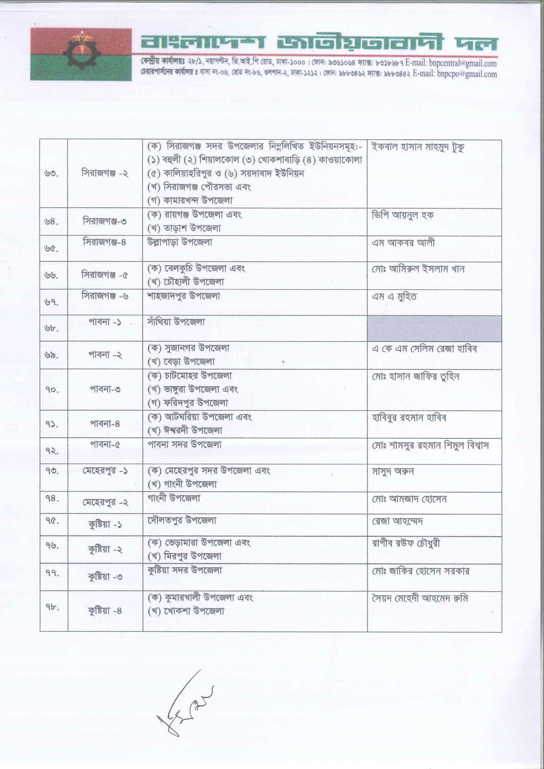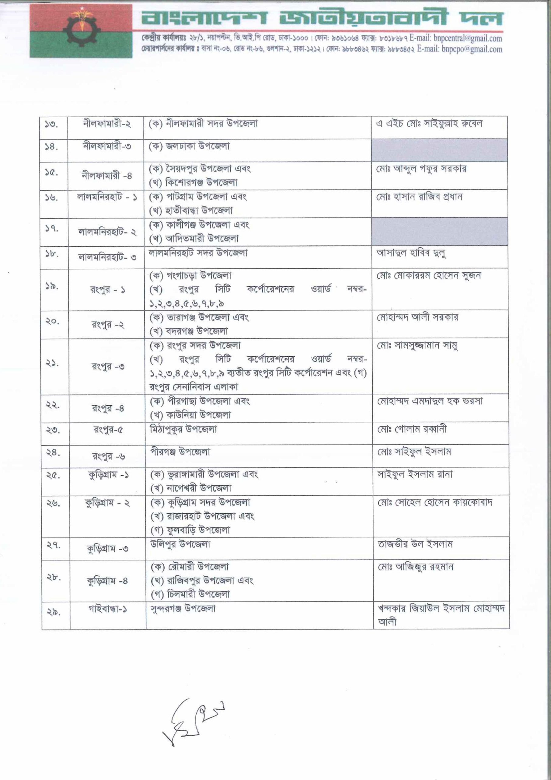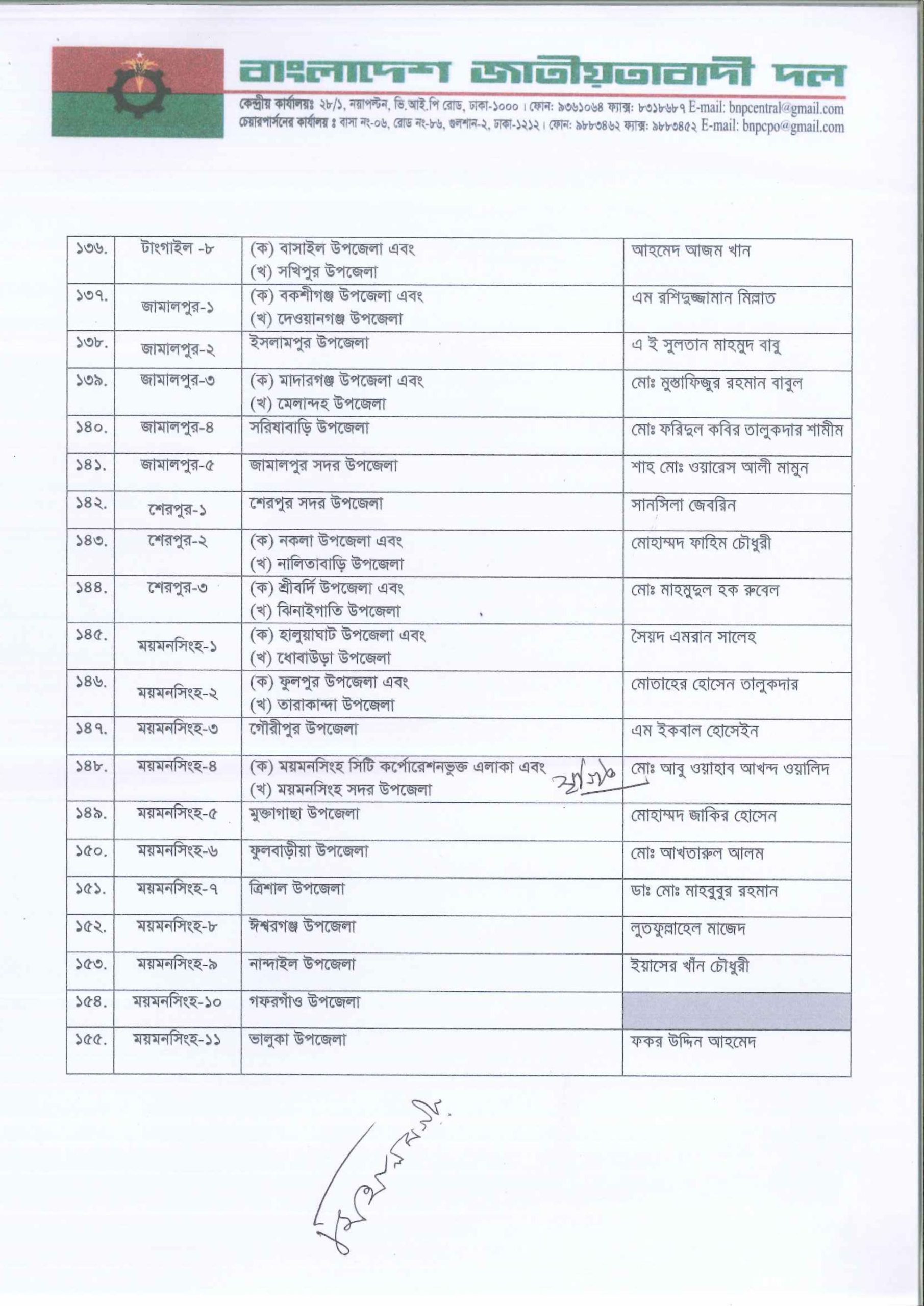 আসন্ন জাতীয় সংসদ নির্বাচনে ২৩২ আসনে সম্ভাব্য প্রার্থী তালিকা ঘোষণা করেছে বাংলাদেশ জাতীয়তাবাদী দল (বিএনপি)। সোমবার (৩ নভেম্বর) দুপুরে রাজধানীর গুলশানে বিএনপি চেয়ারপারসনের কার্যালয়ে আয়োজিত এক সংবাদ সম্মেলনে দলীয় প্রার্থীদের নাম ঘোষণা করেন মহাসচিব মির্জা ফখরুল ইসলাম আলমগীর।
