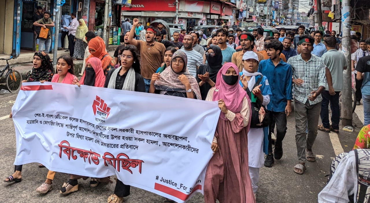 বরিশালে আন্দোলনকারী শিক্ষার্থীদের বিক্ষোভ