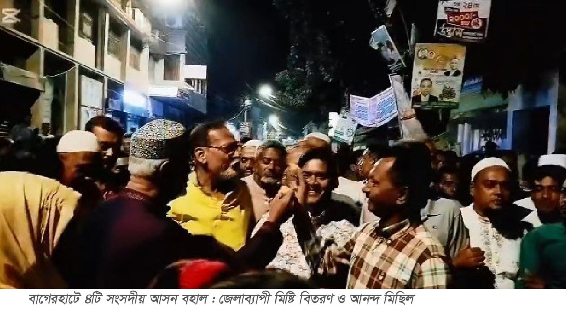 বাগেরহাটে ৪টি সংসদীয় আসন বহাল : জেলাব্যাপী মিষ্টি বিতরণ ও আনন্দ মিছিল