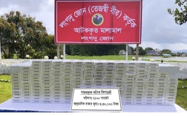 লংগদু সেনা জোনের অভিযানে বিপুল পরিমাণ ভারতীয় সিগারেট জব্দ